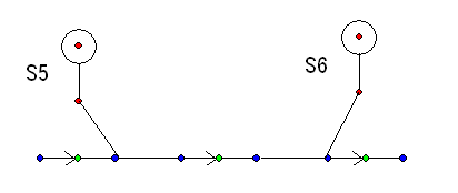 For pipes only the flow values Q and v at the first and last pipe-nodes can be measured. The sensor must be placed at the hydraulic connect points (the blue ones) of the pipe. Examples of sensor placement are given in the figure below: